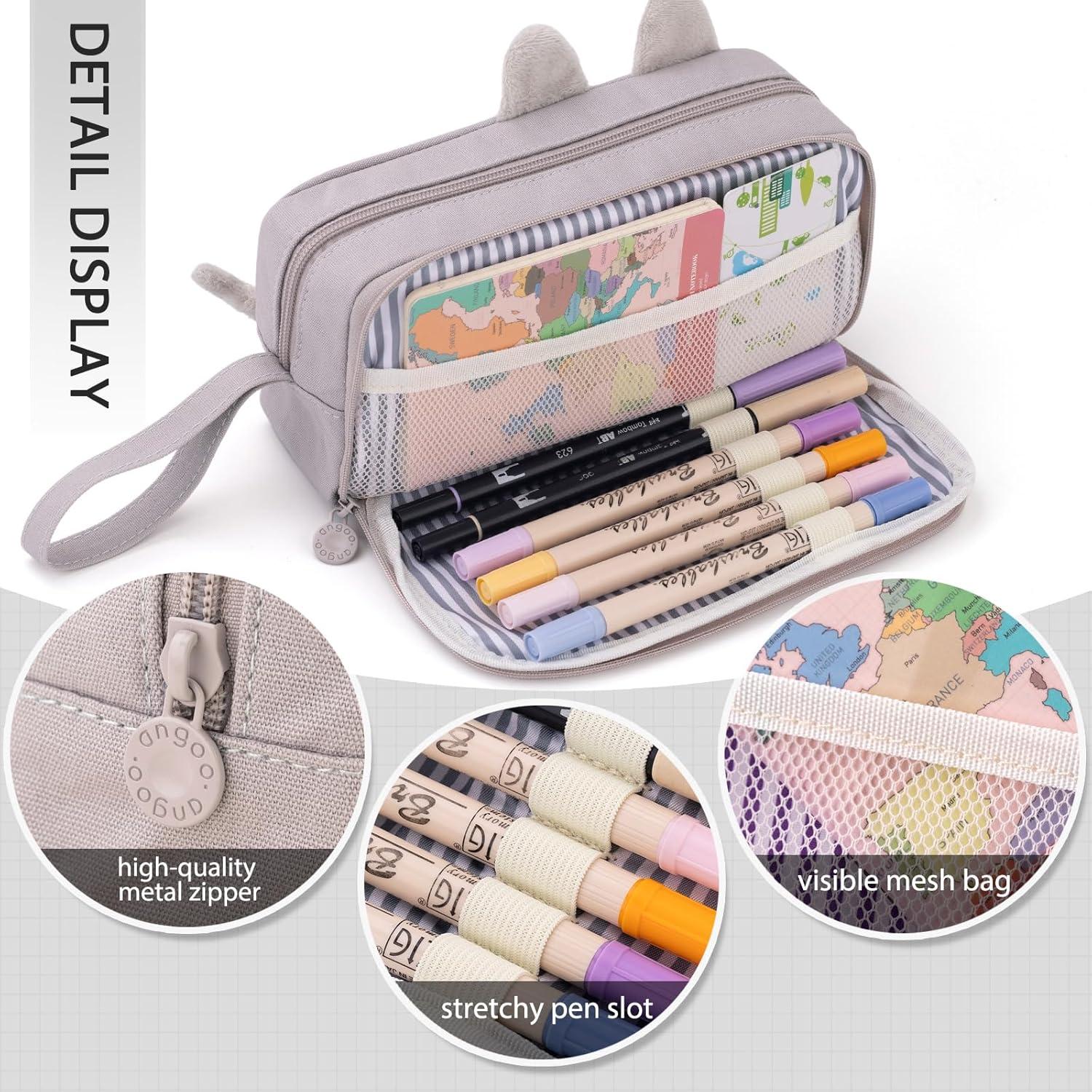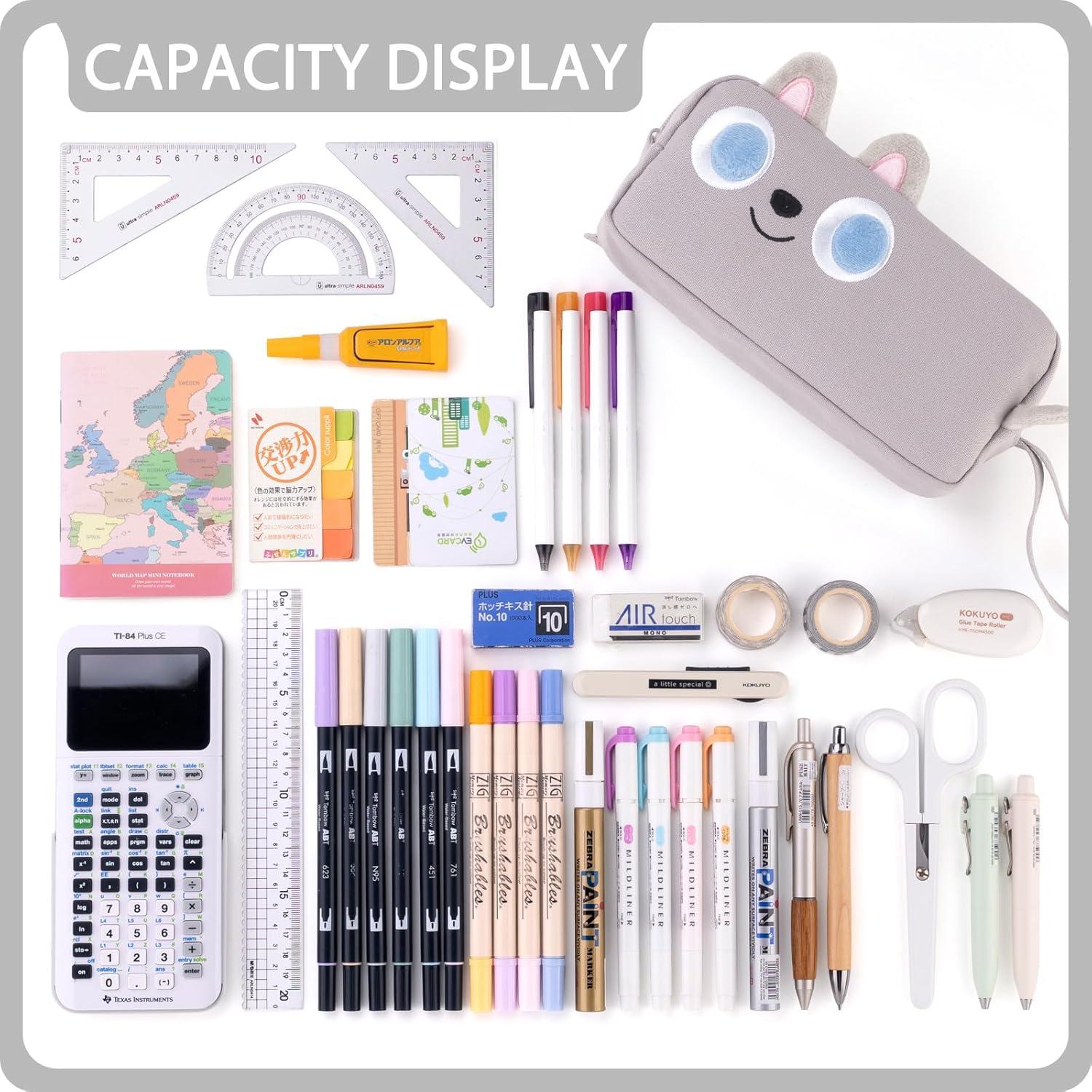 Spacious & Organized Pencil Case: With a 1.55L capacity, this pencil pouch provides ample space to store pens, pencils, markers and other stationery. It includes elastic pen holders, multiple mesh pockets, and a hidden zippered compartment for easy organization