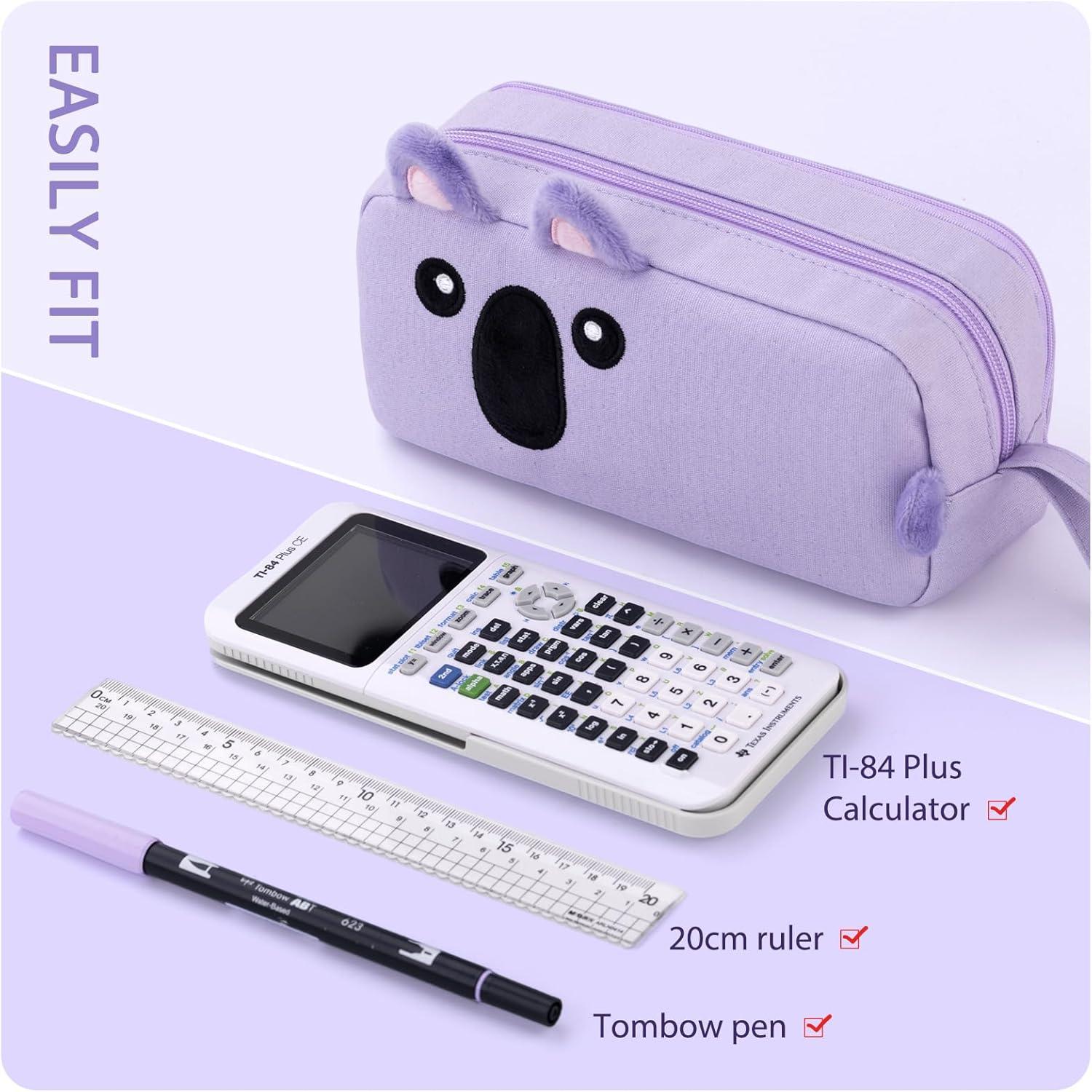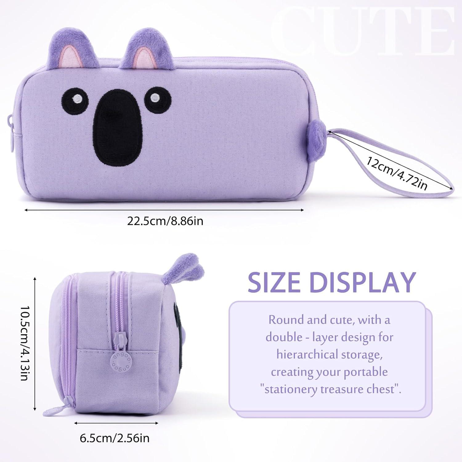 CICIMELON Cartoon Pencil Case, Large Capacity Pen Pouch with Embroidered Animal Design, School Supplies Bag for Kids, Teens, Students (Gray Dog)(Purple Koala)