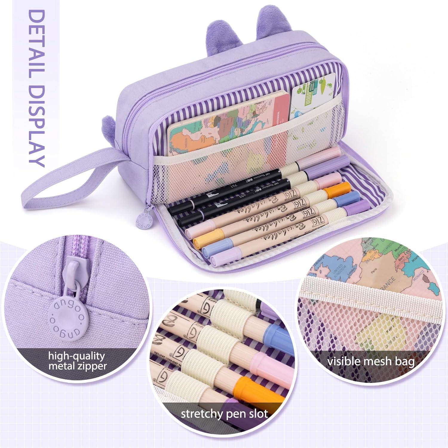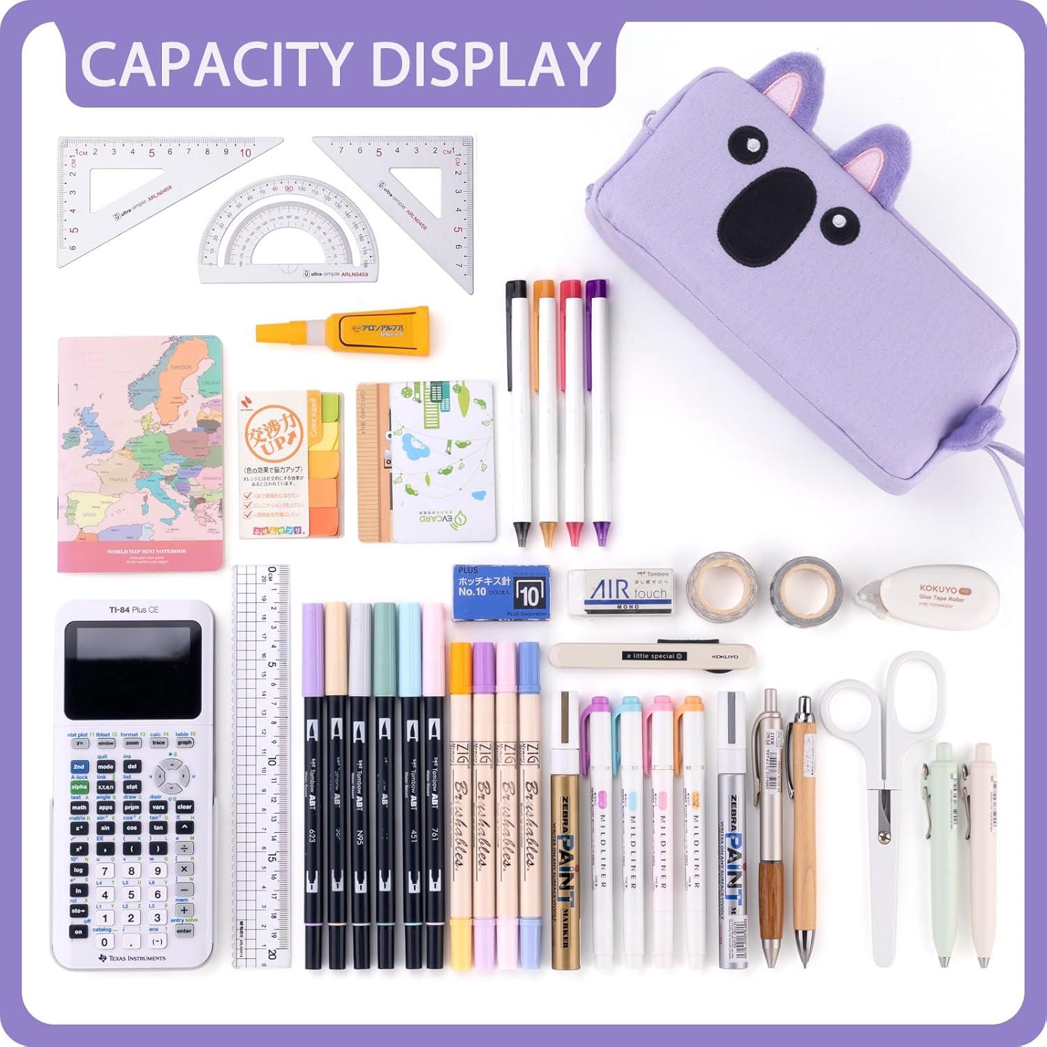 Spacious & Organized Pencil Case: With a 1.55L capacity, this pencil pouch provides ample space to store pens, pencils, markers and other stationery. It includes elastic pen holders, multiple mesh pockets, and a hidden zippered compartment for easy organization