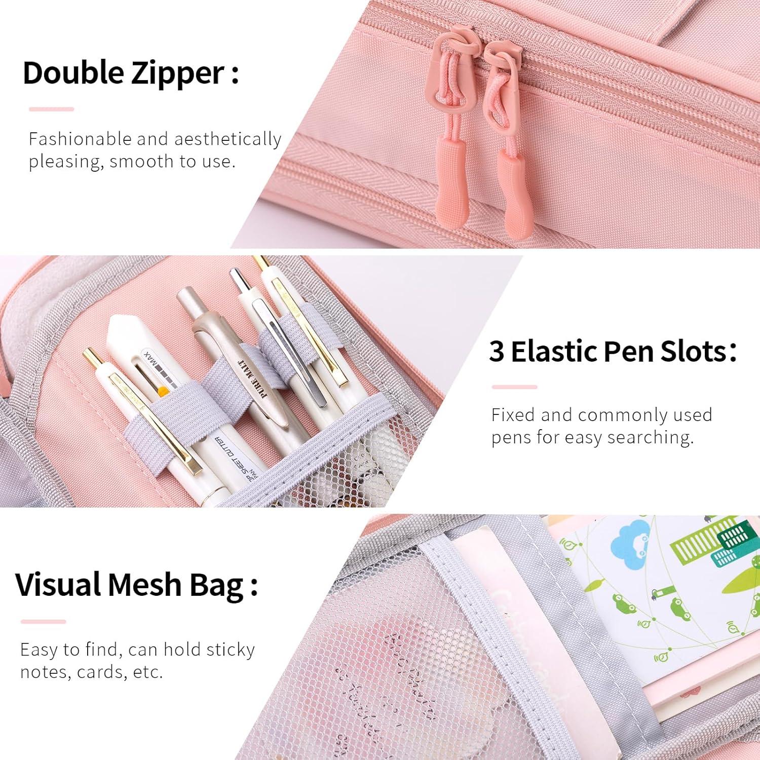 imageCICIMELON Durable Pen Pencil Case Big Storage Pen Pouch Bag for School Supplies Office College Teen Girls Adults PurpleUpgraded Pink