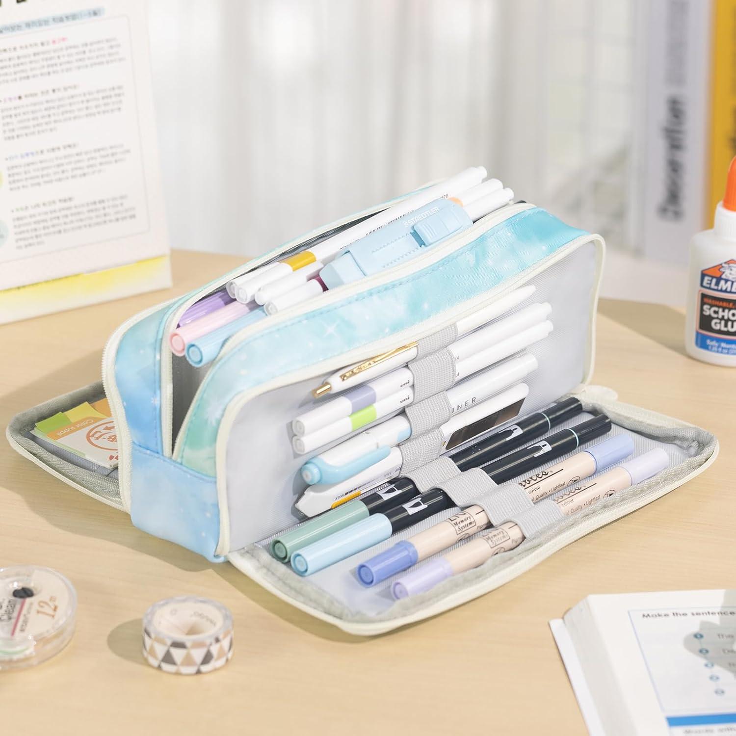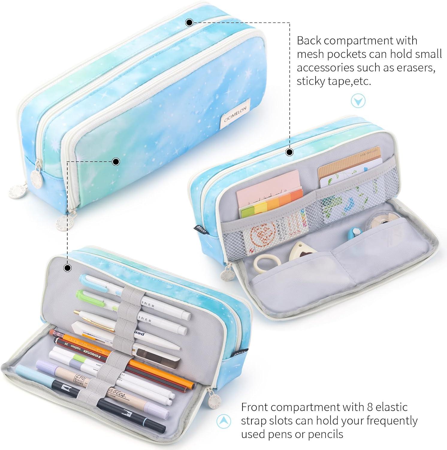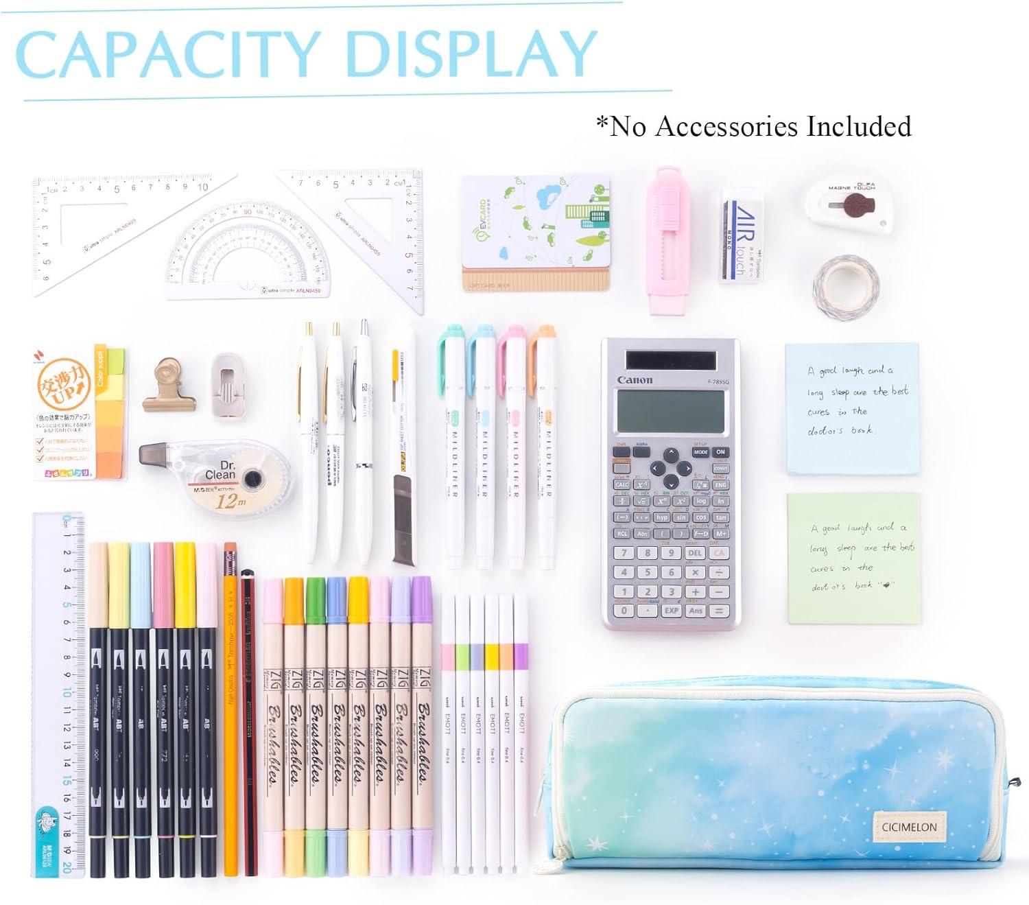 CICIMELON Large Capacity Pencil Case 3 Compartment Pouch Pen Bag for School Teen Girl Boy Men Women (Beige)(Dream)