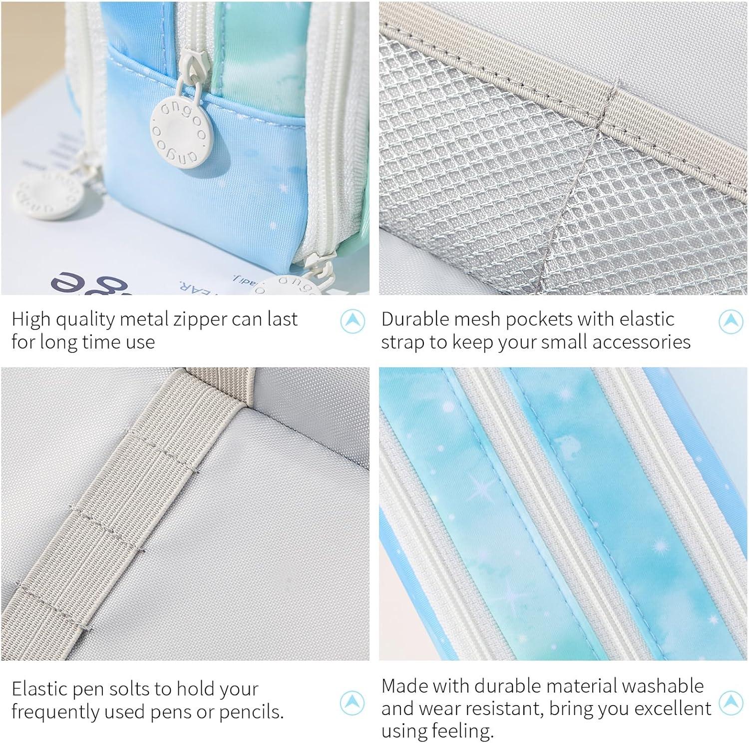 Unique Designs: With 3 compartments to separate and organize your different items with different purpose. Main compartment is big and very safe for your pens or 3c products. The interior small mesh pocket is perfect for small items or cables.