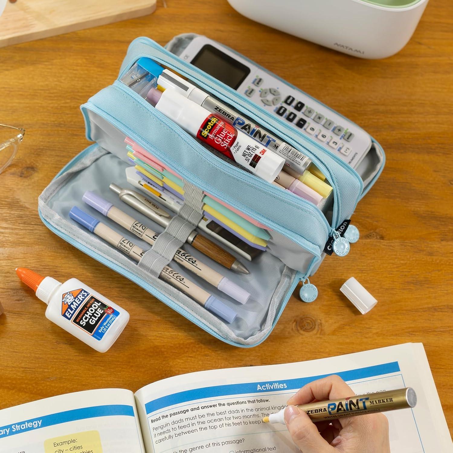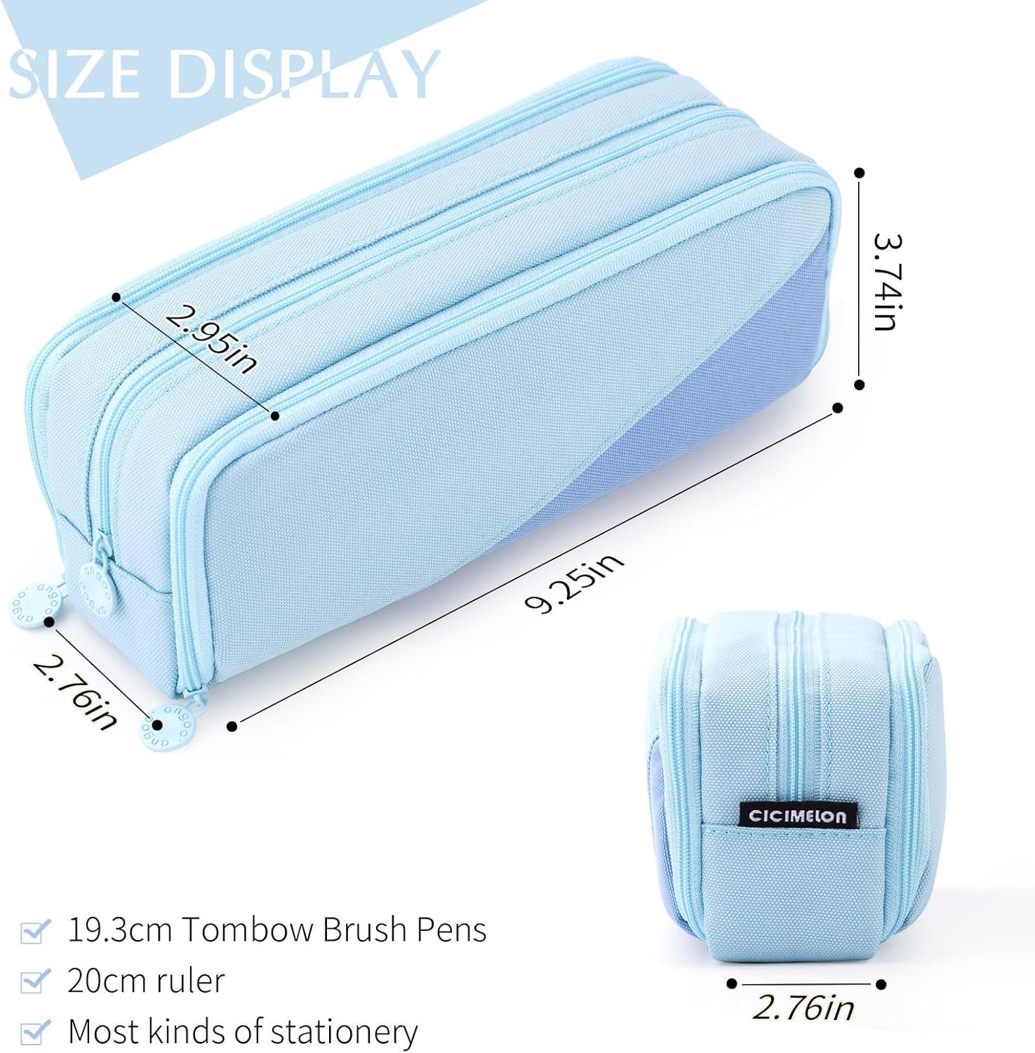 CICIMELON Large Capacity Pencil Case 3 Compartment Pouch Pen Bag for School Teen Girl Boy Men Women (Beige)(Light Blue)