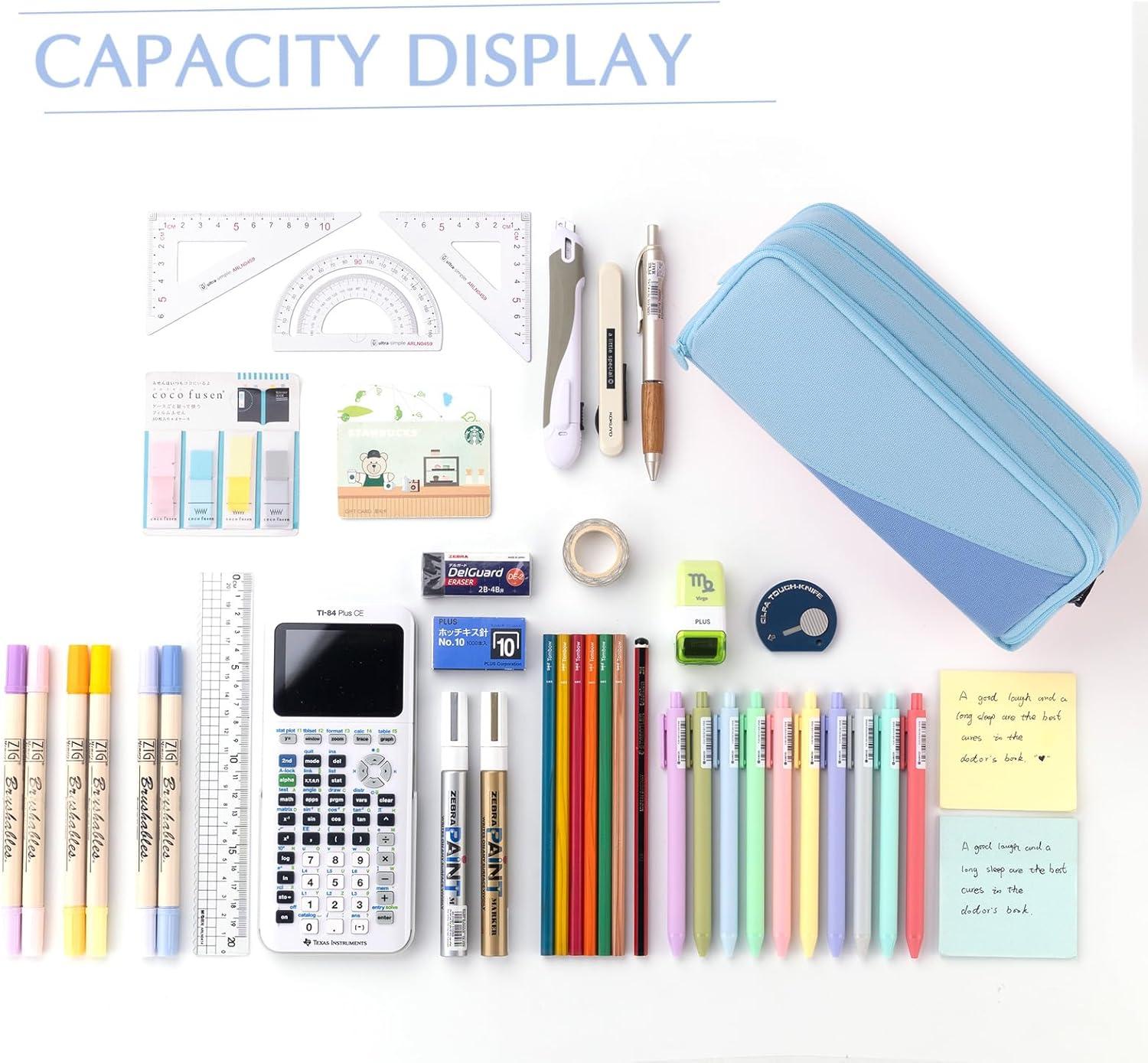 imageCICIMELON Large Capacity Pencil Case 3 Compartment Pouch Pen Bag for School Teen Girl Boy Men Women BeigeLight Blue