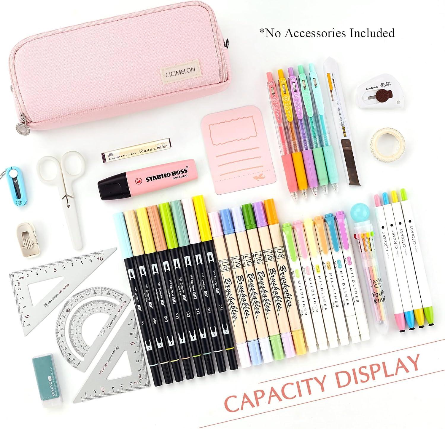 CICIMELON Large Capacity Pencil Case 3 Compartment Pouch Pen Bag for School Teen Girl Boy Men Women (Black)(Pink)